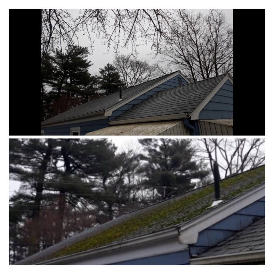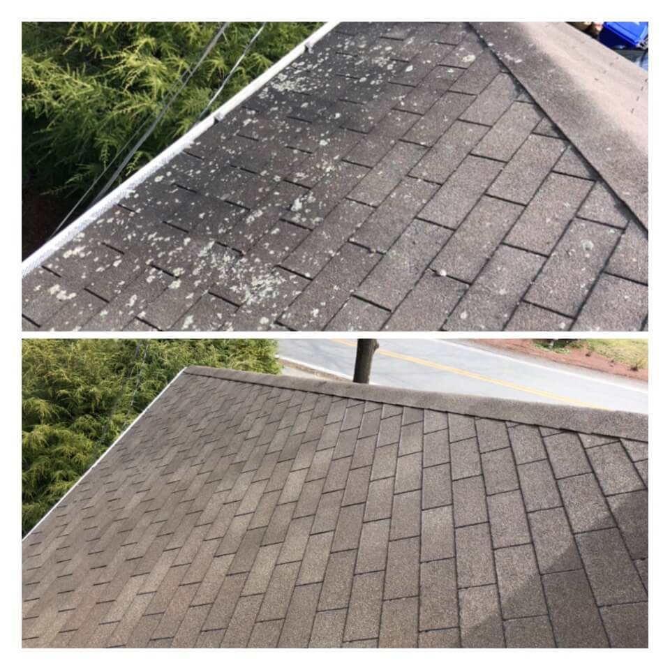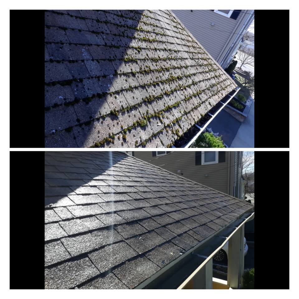 HiCleaners is the most experienced company in Sandown, NH that deals with roof washing and roof soft washing. All of our employees are trained to recognize precise solution mixing ratios to provide you with the safest and most effective soft washing service. Roofs are a commonly neglected part of a house due to the fact that most people don’t have ladders to access it, so it is very easy to just leave it alone and forget about problems that may start to arise. Just like many home owners, discoloration and small bits of moss on a roof can be overlooked because of the misconception that it is just aesthetic. However, it isn’t just aesthetic, the moss slowly lifts the granules off the shingles which in turn shorten the life of the shingle. The moss also spreads, just like any bacteria if it is left alone for too long, it can quickly become a problem that spirals out of control. Call HiCleaners for a free quote, we only use the most advanced eco-friendly solutions and equipment to make sure the job is done right, for the safety of the employees, your plants, grass, pets, and children.