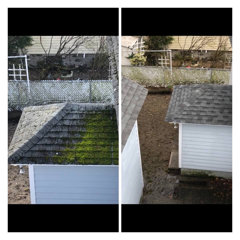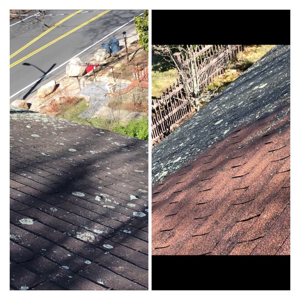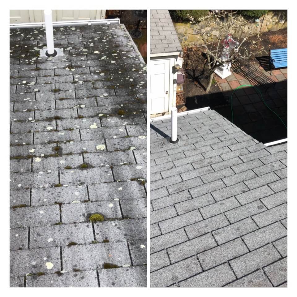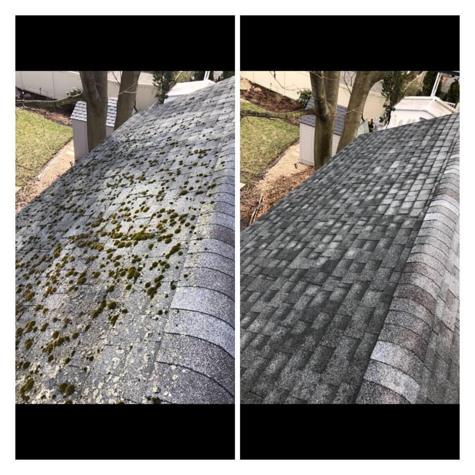 HiCleaners is the most experienced company in Sandown, NH that deals with roof washing and roof soft washing. All of our employees are trained to recognize precise solution mixing ratios to provide you with the safest and most effective soft washing service. Roofs are a commonly neglected part of a house due to the fact that most people don’t have ladders to access it, so it is very easy to just leave it alone and forget about problems that may start to arise. Just like many home owners, discoloration and small bits of moss on a roof can be overlooked because of the misconception that it is just aesthetic. However, it isn’t just aesthetic, the moss slowly lifts the granules off the shingles which in turn shorten the life of the shingle. The moss also spreads, just like any bacteria if it is left alone for too long, it can quickly become a problem that spirals out of control. Call HiCleaners for a free quote, we only use the most advanced eco-friendly solutions and equipment to make sure the job is done right, for the safety of the employees, your plants, grass, pets, and children.